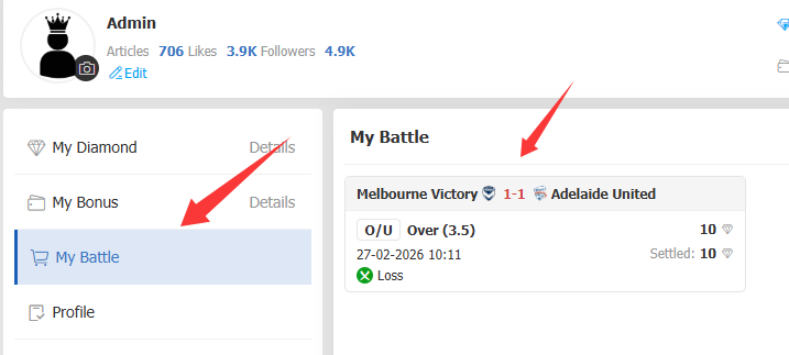 You can check your order history anytime. Simply open your profile page and tap “My Battle” to view your Battle records, including matched orders and settlement details.