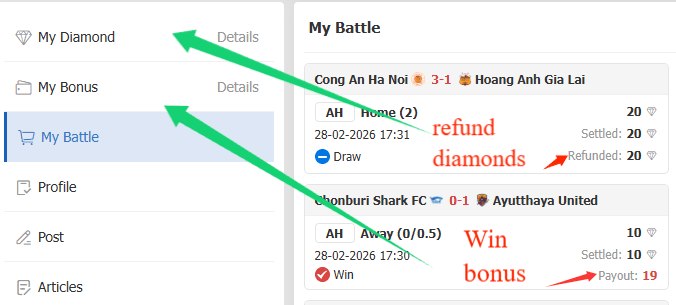 4. Users place their orders using diamonds. If you win, you will receive a bonus reward from the system. This bonus can be withdrawn as cash. 🔥