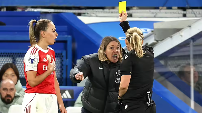 A controversial moment occurred during the match, as Arsenal’s McCabe appeared to pull an opponent’s hair, yet the referee took no action and VAR did not intervene. Instead, Chelsea head coach Sonia Bompastor was sent off for protesting.