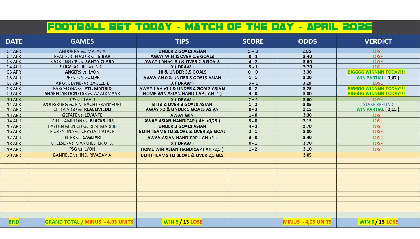 🥁🥁 🏁 MATCH OF THE DAY 🏁 🥁🥁
